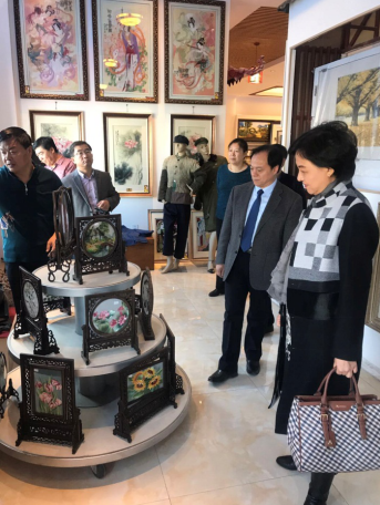 职教中心校长计洪文对我院一行的到来表示热烈的欢迎并对国家级非物质遗产满绣作以简要介绍。他表示“协同创新、实效育人”已成为时代发展的必然趋势,双方通过深度合作,共建“非物质文化遗产---满绣艺术研究中心”合作育人平台,形成集人才培育、资源共享、技术创新、社会服务四位一体的“产教共同体”,共同培养更多的具有非遗技艺和非遗产品设计能力的中高端工匠型人才。