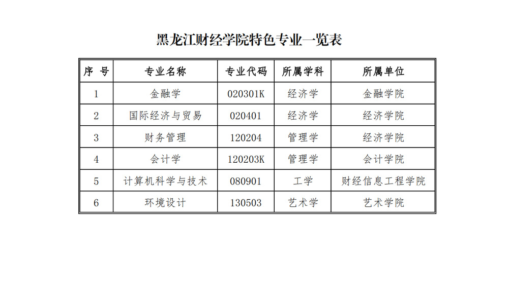 黑龙江财经学院特色专业一览表
