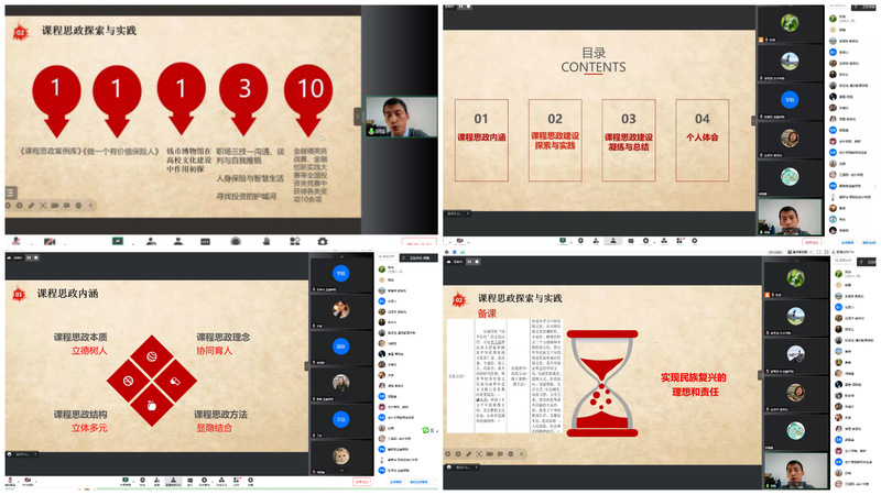11月9日,我校首批省级课程思政示范项目验收答辩会在线上举行,会议由教务处组织,采取项目负责人答辩方式进行,学校教学指导委员会委员、前两批课程思政示范项目教学团队、拟申报第三批示范项目和首批课程思政优秀案例教师参加了会议。作为首批省级课程思政示范课程《商人文化与智慧》课程负责人,郭强教授以“专业思政融合,协同育人赋能”为主题,分别从课程思政内涵、课程思政建设探索、课程思政建设凝练与总结、个人体会四个方面进行了汇报交流。