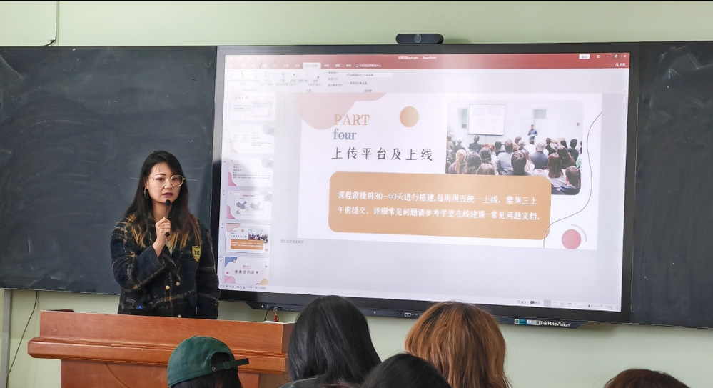 课程制作公司王琳老师结合我校建设要求,明确了课程建设相应流程,分别从建课前期准备、中期拍摄录制和后期上线运行三个方面做了详细介绍。