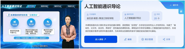 《人工智能通识导论》课程作为面向非计算机专业学生的核心通识课,围绕应用型人才培养目标,聚焦智能时代人才核心需求,创新构建“基础性、交叉性、前沿性、思政性” 四性融合知识体系,涵盖人工智能基础概念、核心工具使用及商业、设计、教育等多领域应用,通过理论讲授、实操训练、案例研讨与小组项目等多元教学模式,培养学生文本生成、图像创作、数据分析等实用技能,引导学生结合自身专业开展创新实践,同步加强人工智能伦理教育,实现技能提升与价值塑造的双重目标,该课程入选首批省级人工智能通识课程。