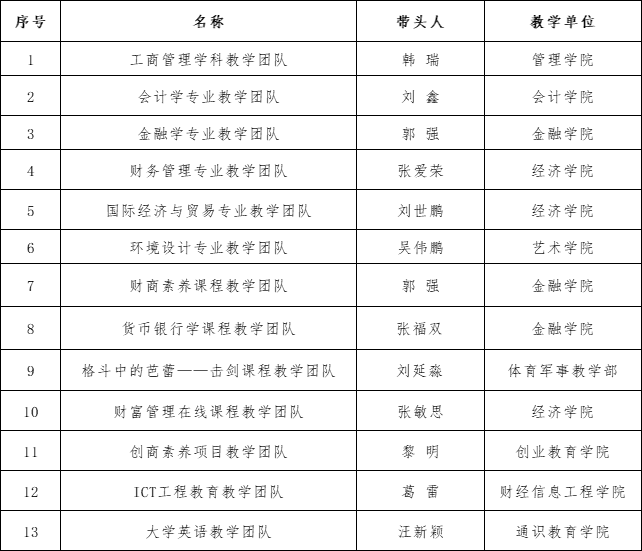 黑龙江财经学院校级教学团队一览表